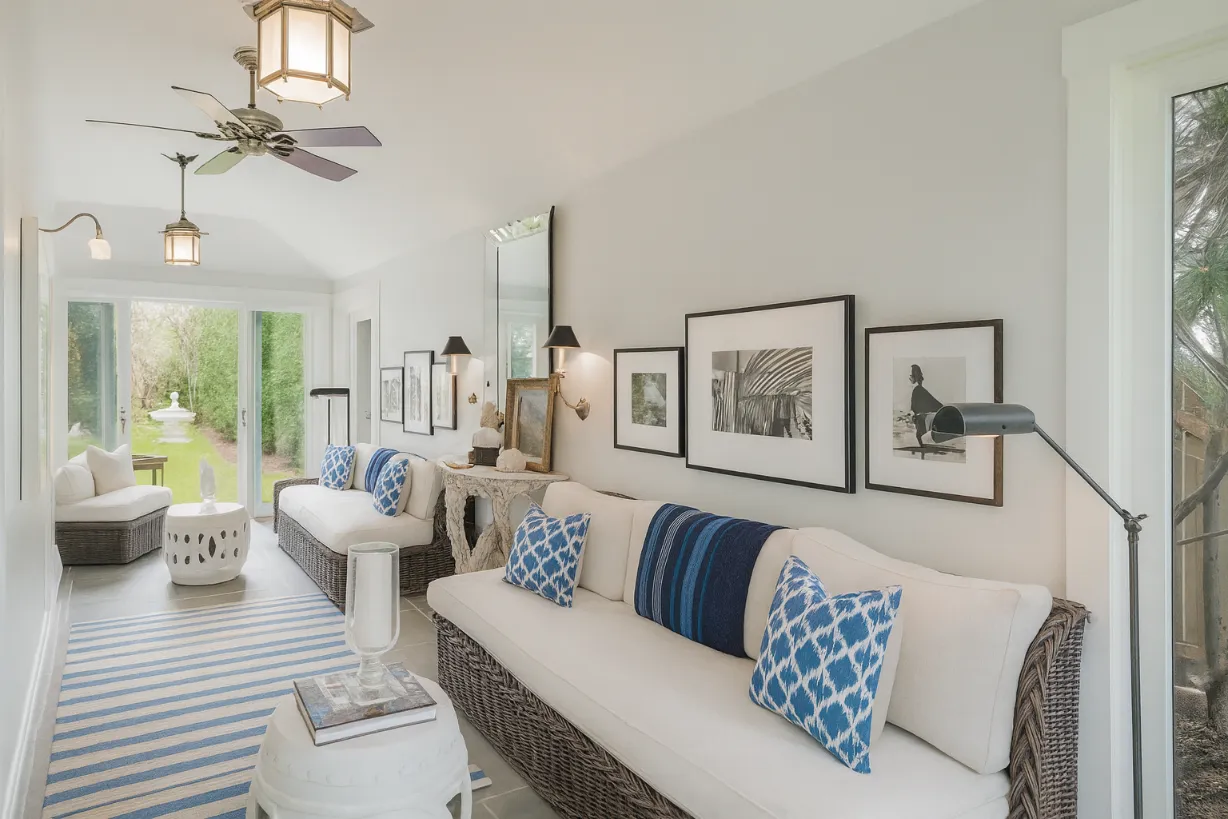 Set in the Hamptons, this estate combines classic East Coast architecture with contemporary interior design. Expansive living spaces were designed for both family life and large-scale entertaining, with a focus on light, proportion, and comfort. Natural materials, custom furnishings, and a refined palette create a timeless atmosphere that balances elegance with ease. Outdoor terraces and gardens extend the living experience, making the home feel deeply connected to its coastal surroundings.