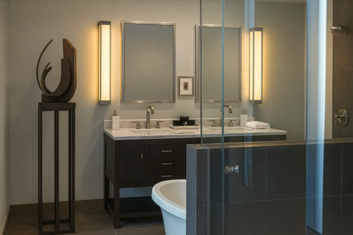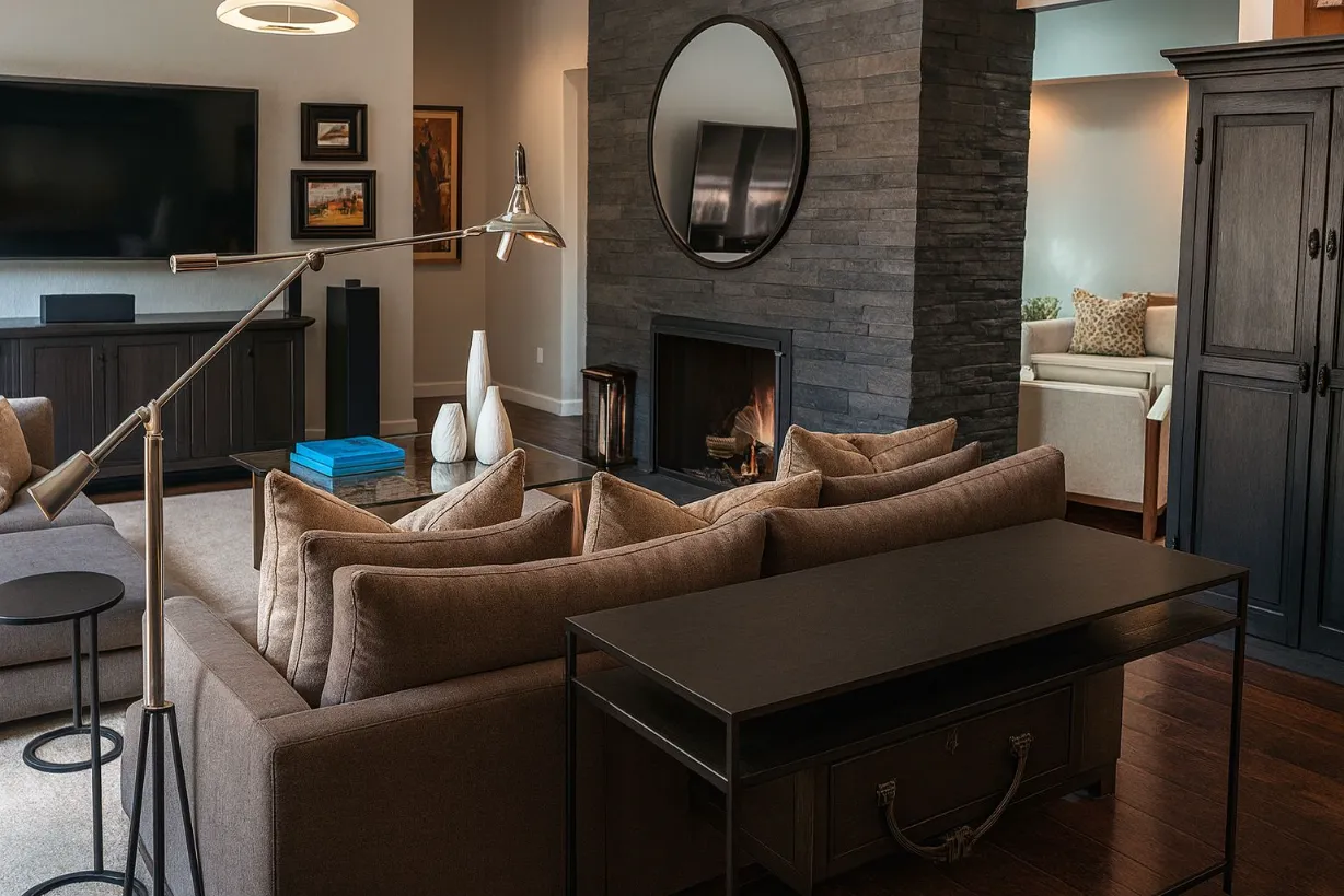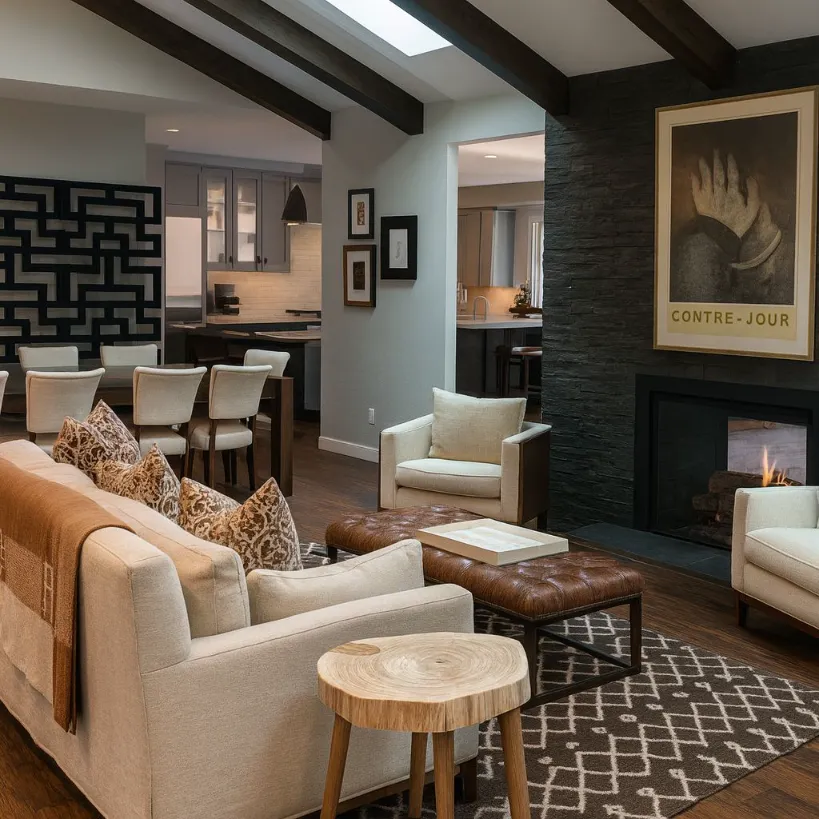 This residence embraces a clean, modern aesthetic balanced with warm, livable details. Expansive windows fill the interiors with natural light, while open-plan spaces flow seamlessly between living, dining, and outdoor terraces. A restrained palette of natural materials is elevated with custom furnishings and refined finishes, creating a home that feels both contemporary and timeless. Designed for a family that values both relaxation and entertaining, it captures the essence of modern California living.